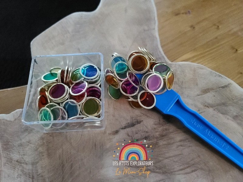 Lot de 100 jetons métalliques de marque Shaw Magnets, pouvant être ramassés avec un aimant.