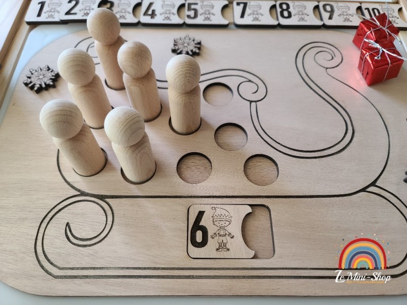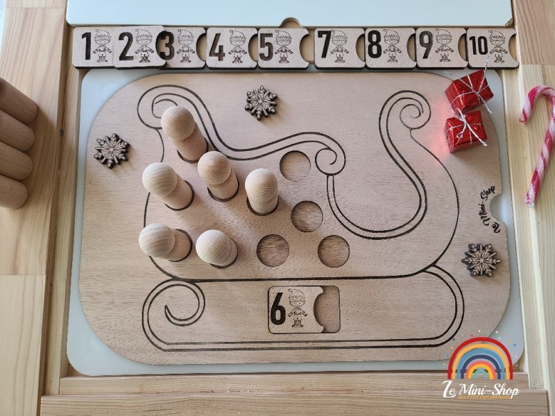 Les lutins veulent monter dans le traineau du père noël , aide les et compte le bon nombre de lutins.