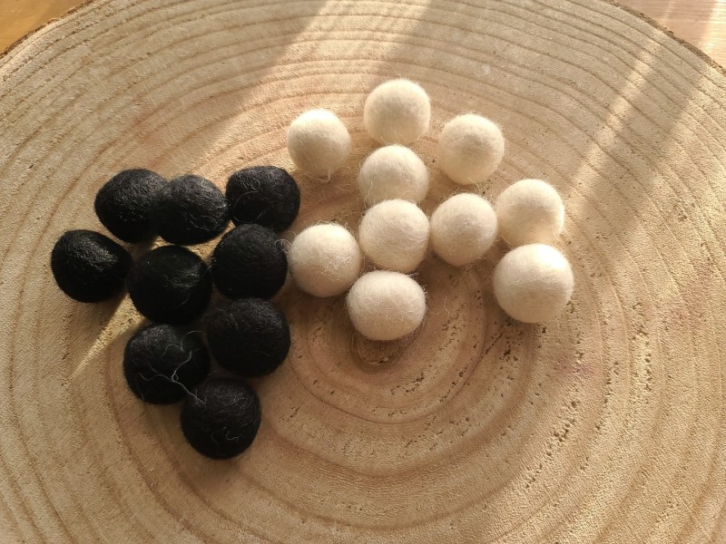 Lot de 40 Boules de laine feutrées noires et blanches,