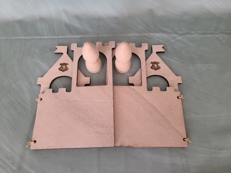 Mini château en bois transportable. idéal pour vos soirées en exterieur avec les enfants . Se range facilemement dans un sac, une boite .