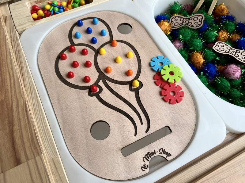 Plaque en bois à utiliser avec vos bacs trofast et vos tables flisat pour vos thèmes.