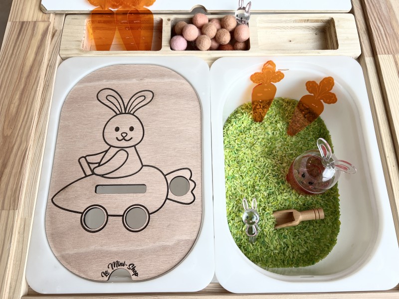 Plaque en bois a utiliser avec vos bacs trofast et vos tables flisat pour vos thèmes.