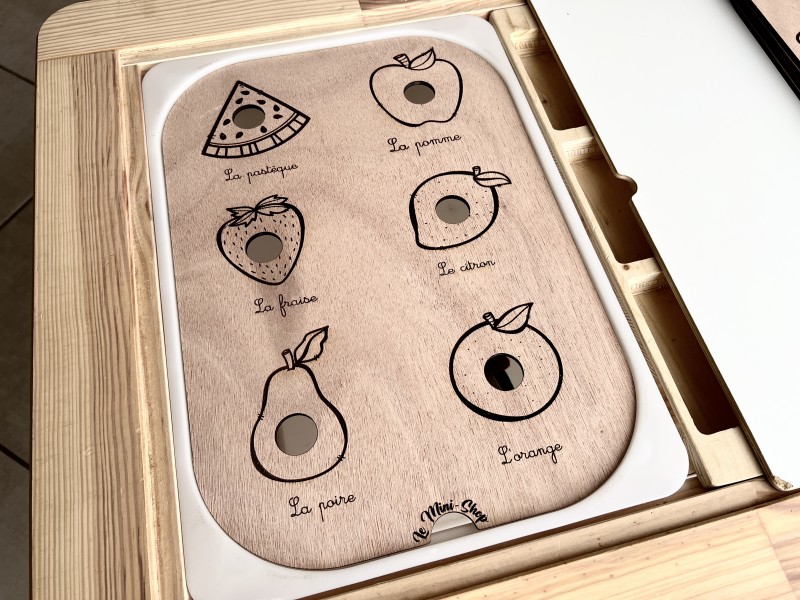 Plaque en bois a utiliser avec vos bacs trofast et vos tables flisat pour vos thèmes.