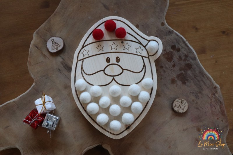 Le but est de placer les boules de laines dans les encoches, (on peut utiliser des pompons ou d'autres éléments).