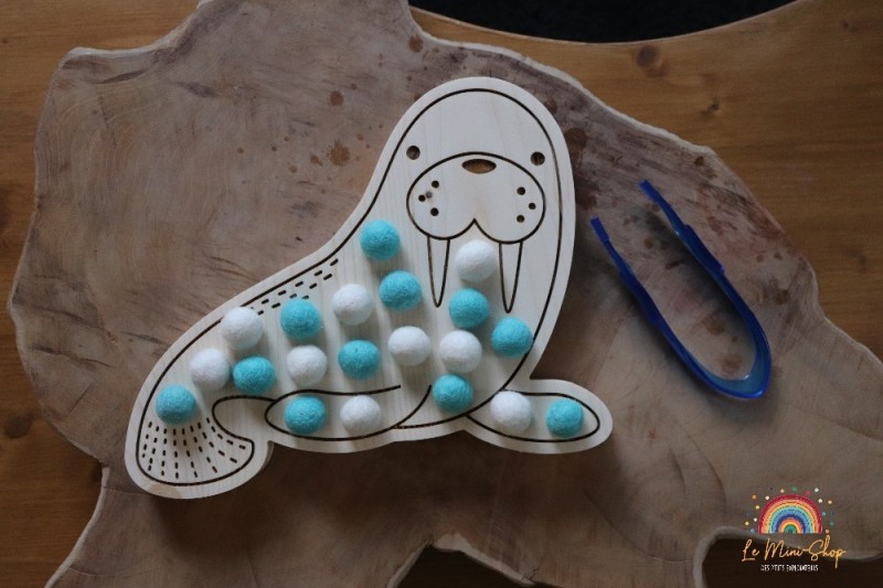 Le but est de placer les boules de laines dans les encoches, (on peut utiliser des pompons ou d'autres éléments).