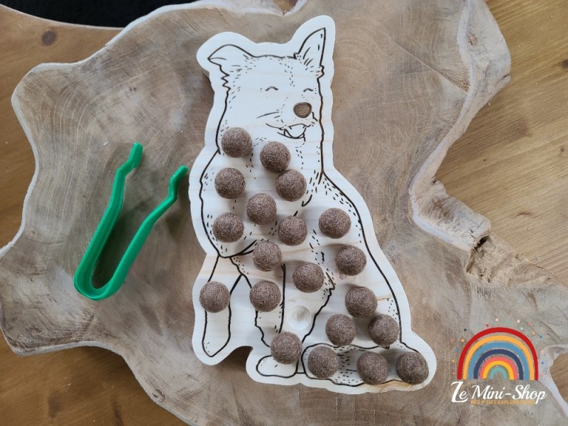 Le but est de placer les boules de laines dans les encoches, (on peut utiliser des pompons ou d'autres éléments).
