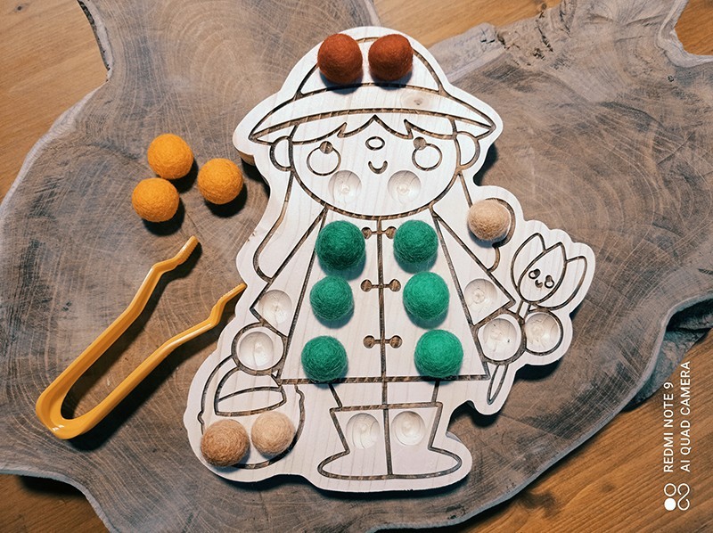 Le but est de placer les boules de laines dans les encoches, (on peut utiliser des pompons ou d'autres éléments).