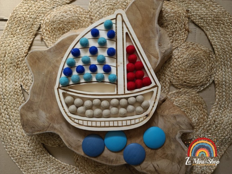 Le but est de placer les boules de laines dans les encoches, (on peut utiliser des pompons ou d'autres éléments).