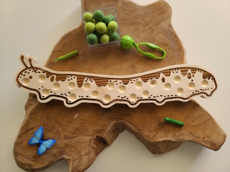 Le but est de placer les boules de laines dans les encoches, (on peut utiliser des pompons ou d'autres éléments).