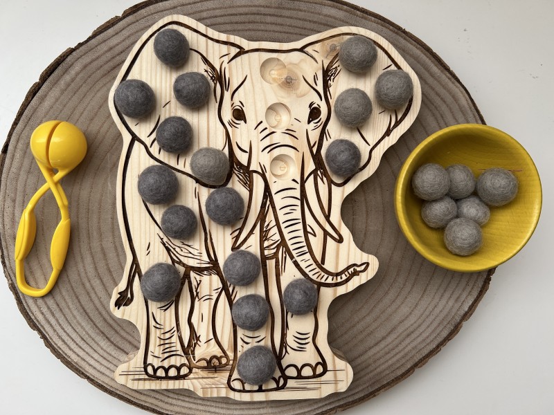 Le but est de placer les boules de laines dans les encoches, (on peut utiliser des pompons ou d'autres éléments).