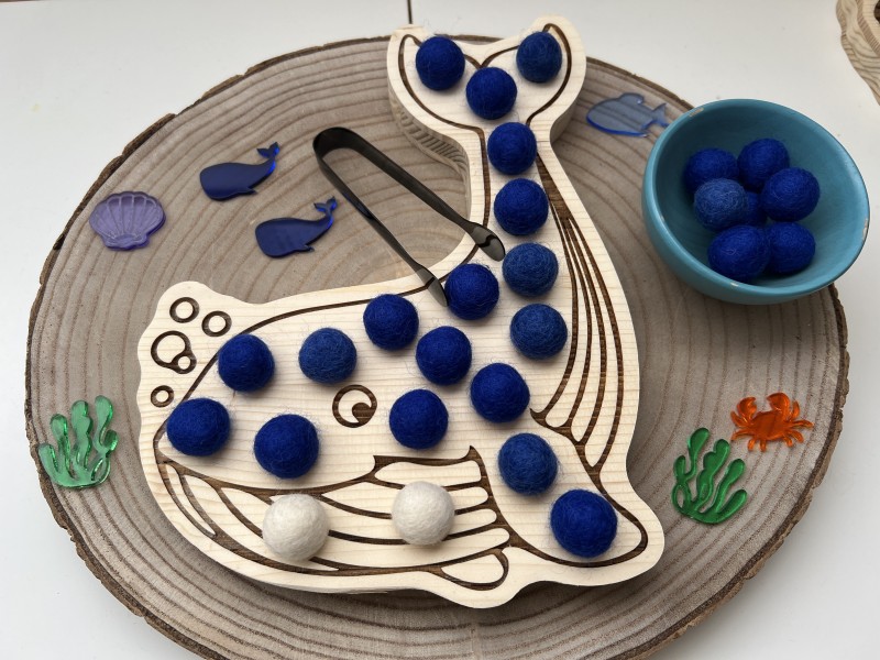 Le but est de placer les boules de laines dans les encoches, (on peut utiliser des pompons ou d'autres éléments).