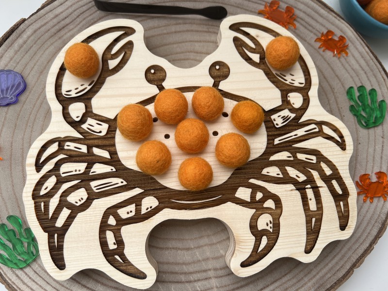 Le but est de placer les boules de laines dans les encoches, (on peut utiliser des pompons ou d'autres éléments).